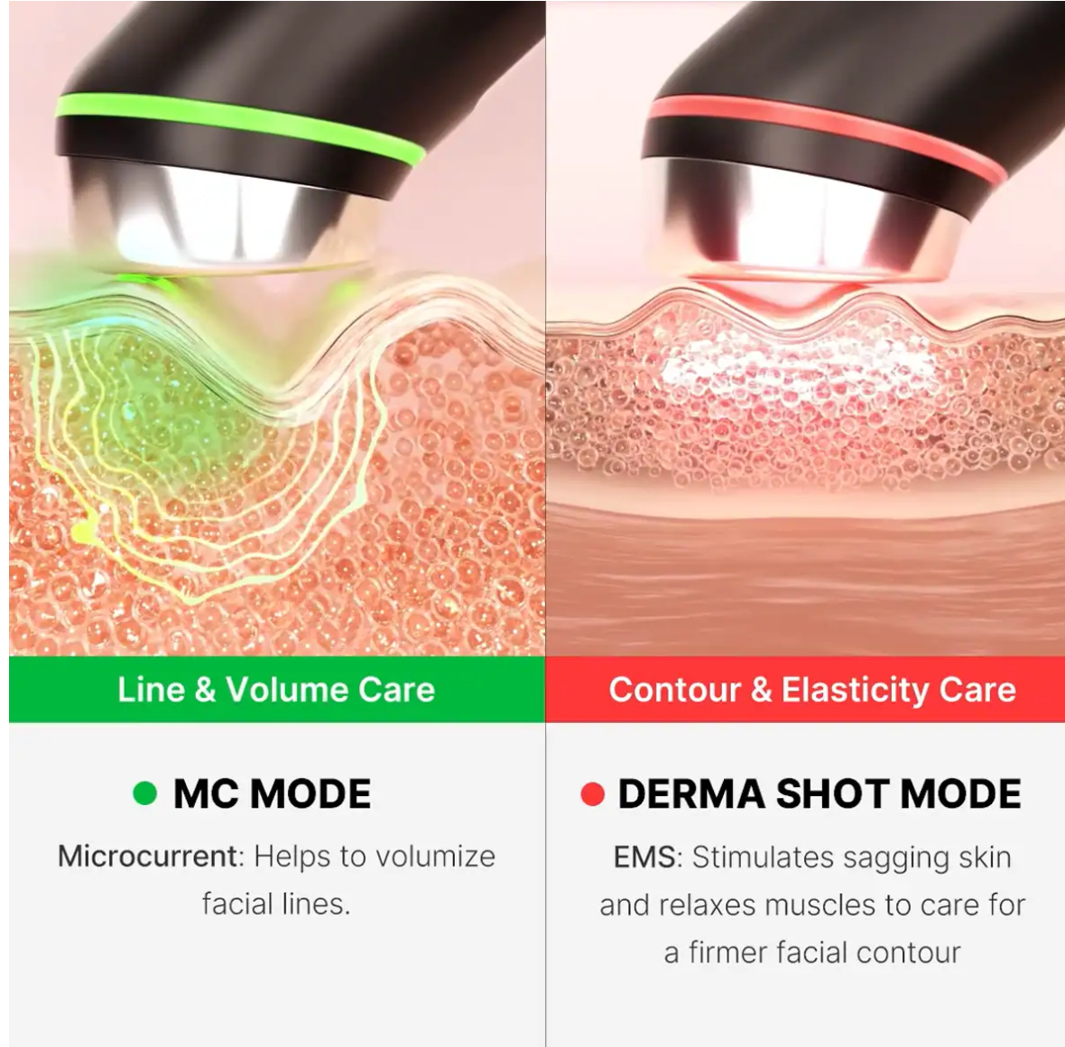 Microcorriente (MC): Envía corrientes eléctricas de bajo nivel para estimular los músculos faciales para una apariencia tersa y firme.